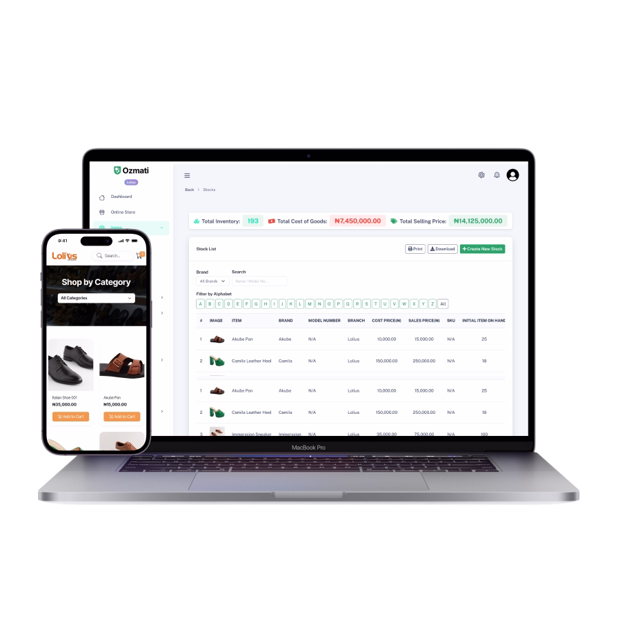 Ozmati is a business management and commerce platform that lets merchants create an online store, process payments, manage inventory, track sales and expenses, and grow revenue.